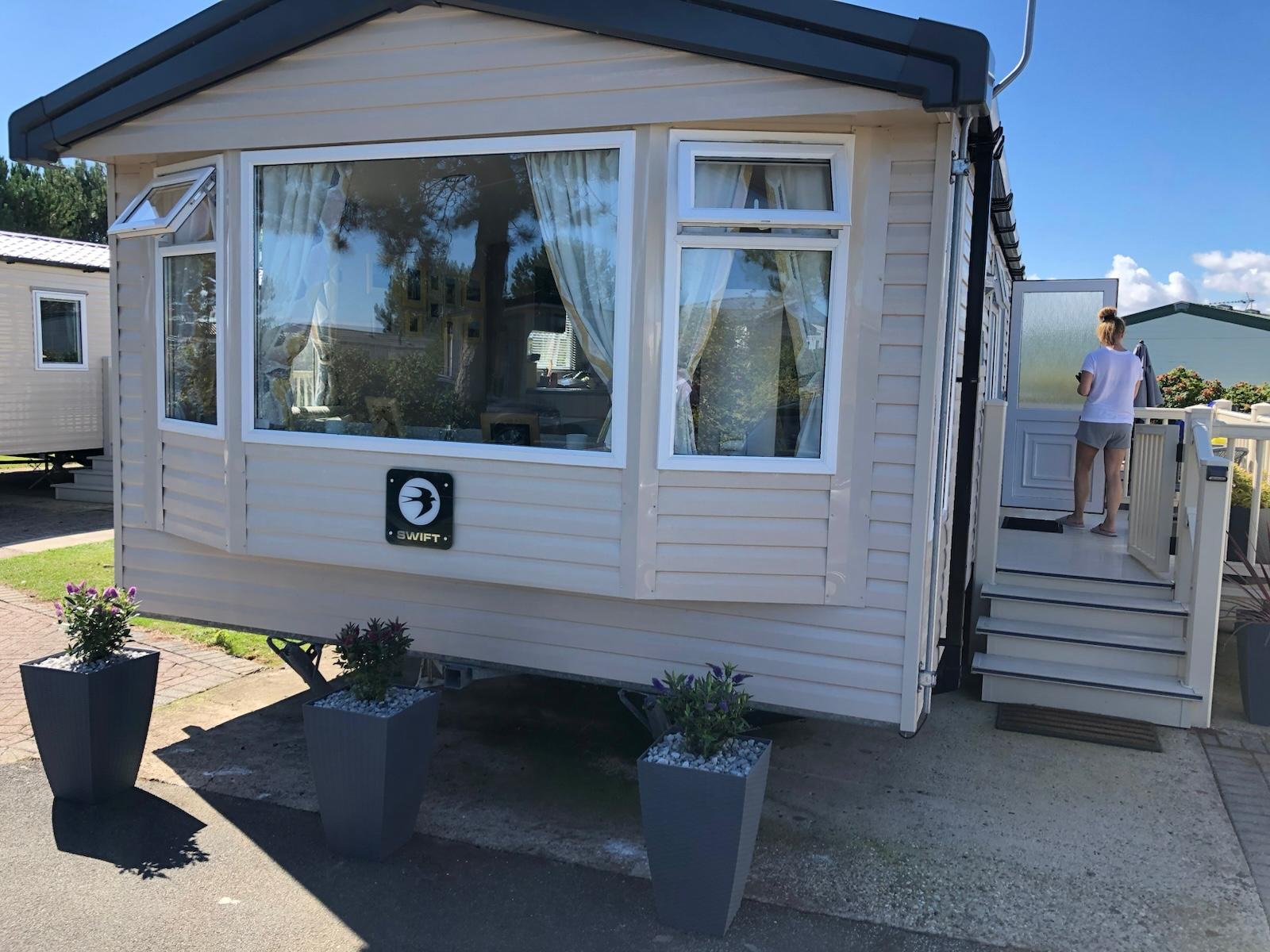 The bright, modern and well cared for 2 bedroom Swift Loire is sited on a spacious plot on The Paddocks and has the benefit of a side sunny deck and briefly comprises: